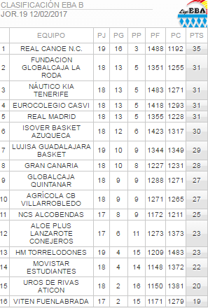 Clasificación Liga EBA*