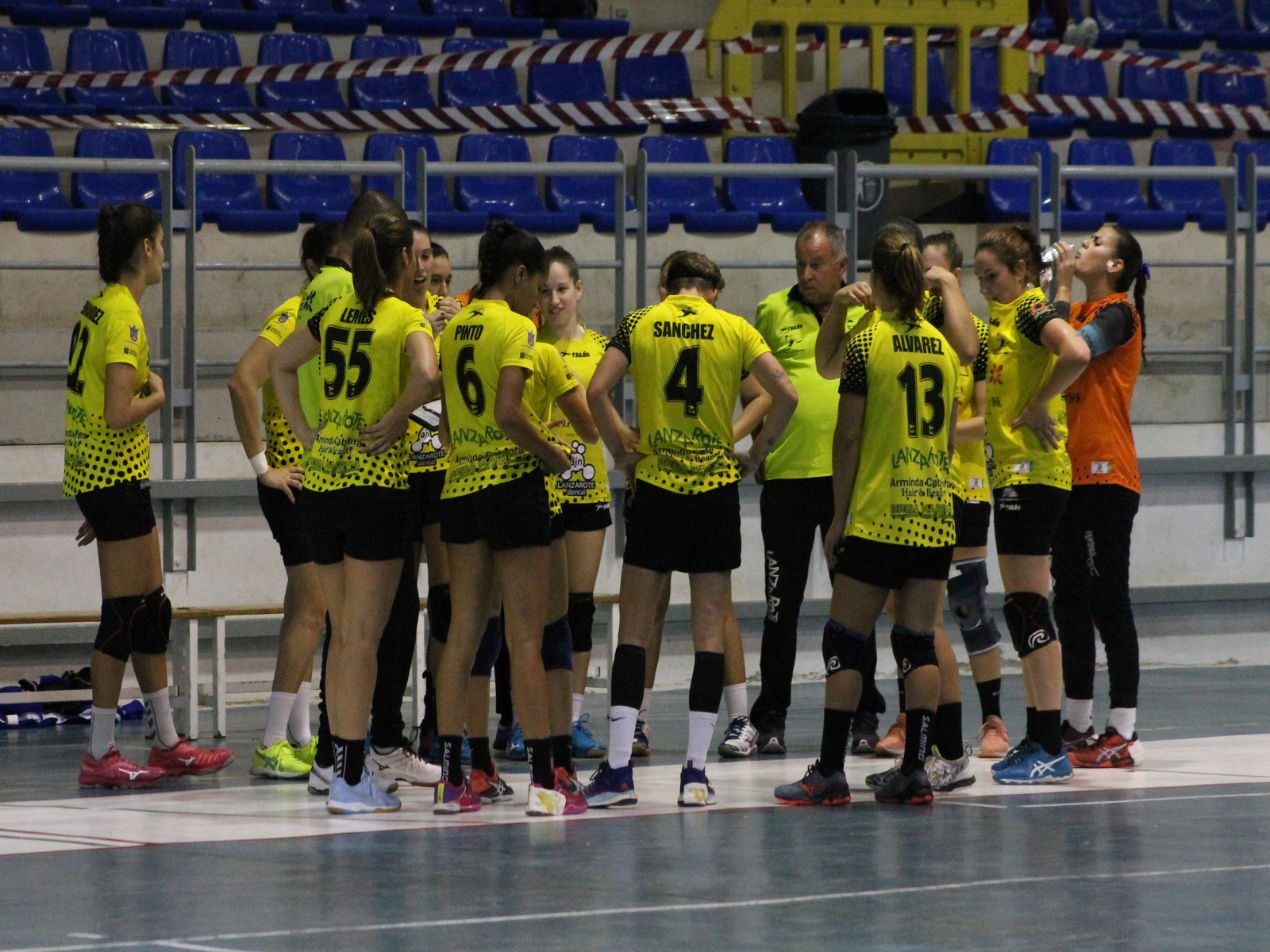 Así fueron transcurriendo los minutos en la primera mitad, donde los entrenadores esperaban las reacciones del banquillo opuesto para tomar las suyas. Una partida de ajedrez, sobre la goma del Pabellón de Tías. Es la entrenadora del San Adrián cuando pide tiempo muerto con el marcador de 12 a 11, a falta de 5 minutos, respondiéndole Miguel Ángel Lemes con otro tiempo muerto a falta de 12 segundos para acabar la primera mitad y el marcador inamovible. Sólo una genialidad de Lucía Betancort, con el tiempo acabado en el lanzamiento de una falta, dio algo más de tranquilidad, poniendo el 13 a 11 antes de que las jugadoras se fueran a vestuarios.