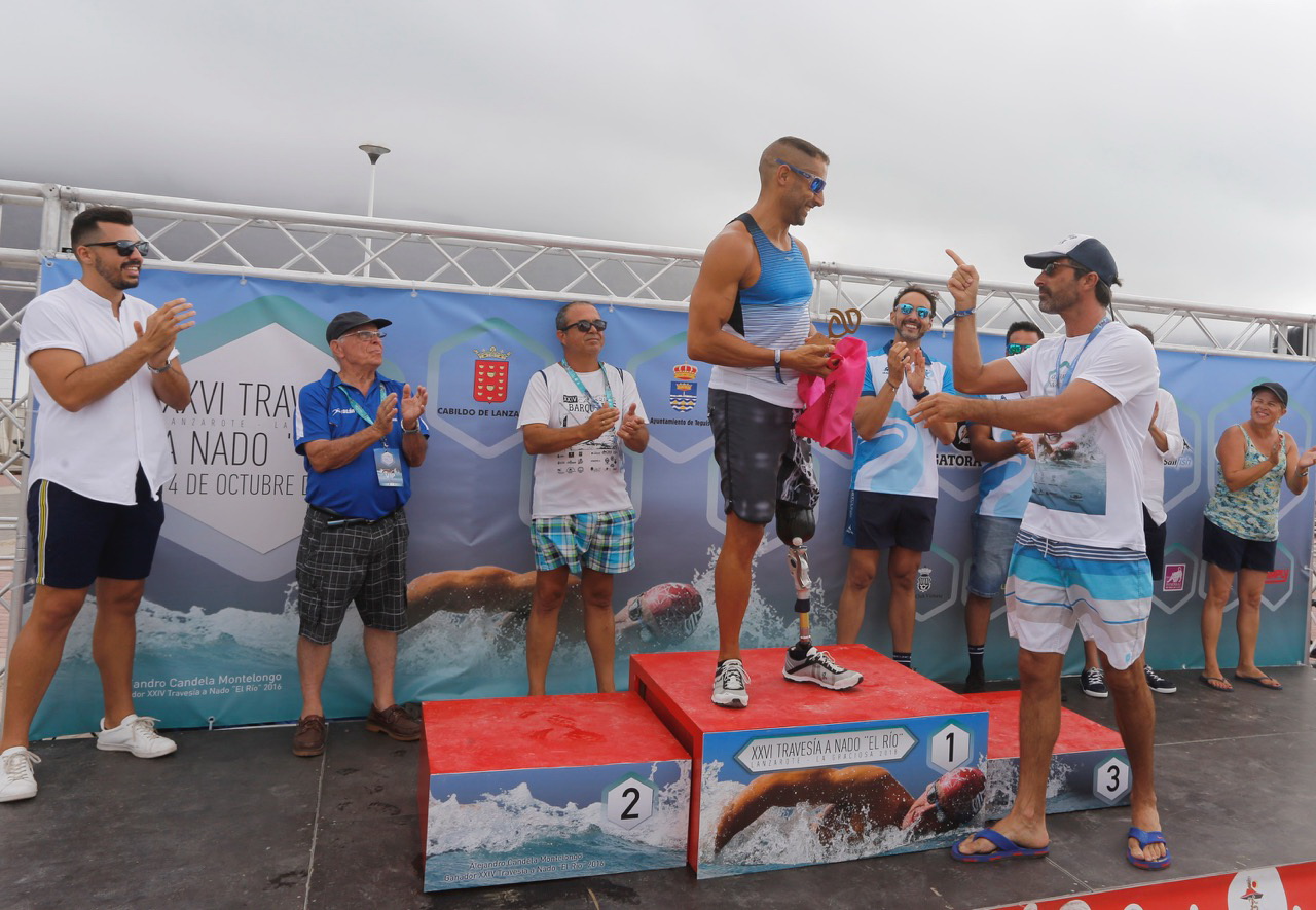 En un apretado final, el lanzaroteño Federico Bini (CN Nadamás) empleó 35 minutos y 59 segundos en recorrer dicha distancia, sólo dos segundos menos que el segundo clasificado Javier Betancort (CN Nadamás) y tres menos que Óscar Martín (CN Nonadamos), que ocupó el tercer lugar del podio. Por su parte, la toledana Rebeca Santos (CN Máster Torrijos) invirtió 37 minutos y 44 segundos en completar el recorrido. Sara González (CN Nadamás), vigente campeona de la Copa Cabildo de Lanzarote de Aguas Abiertas, fue segunda con un tiempo de 40 minutos y seis segundos, y Mar Peña (CN Las Palmas) ocupó la tercera plaza con 42 minutos y 29 segundos.