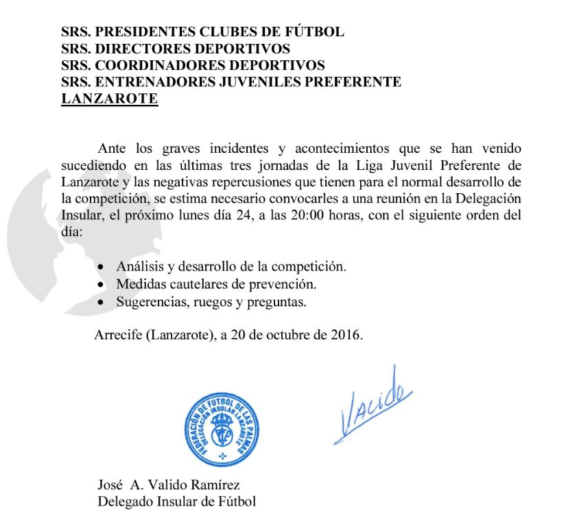 • Ya ha dejado de ser un hecho aislado para convertirse casi en costumbre. Los bochornosos episodios que hemos presenciado en la Juvenil Preferente tienen que terminar sí o sí. Cada semana estamos viendo cómo los partidos de los chicos, acaban en batallas en el rectángulo de juego y es algo que la Federación Insular de Fútbol de Lanzarote quiere erradicar de raíz.