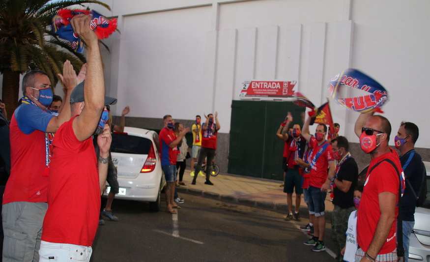 Guardando la distancia protocolaria realizaron un pasillo a los jugadores y componentes del cuerpo técnico de la UD Lanzarote, antes de que todos ellos accedieran al interior de la Ciudad Deportiva Lanzarote y comenzar una nueva sesión de entrenamiento a las órdenes del técnico Josu Uribe. En la cara de los jugadores se reflejaba la satisfacción de saber que cuentan con el apoyo de sus aficionados y que estos estarán en todo momento animando al equipo, en los buenos y malos momentos.