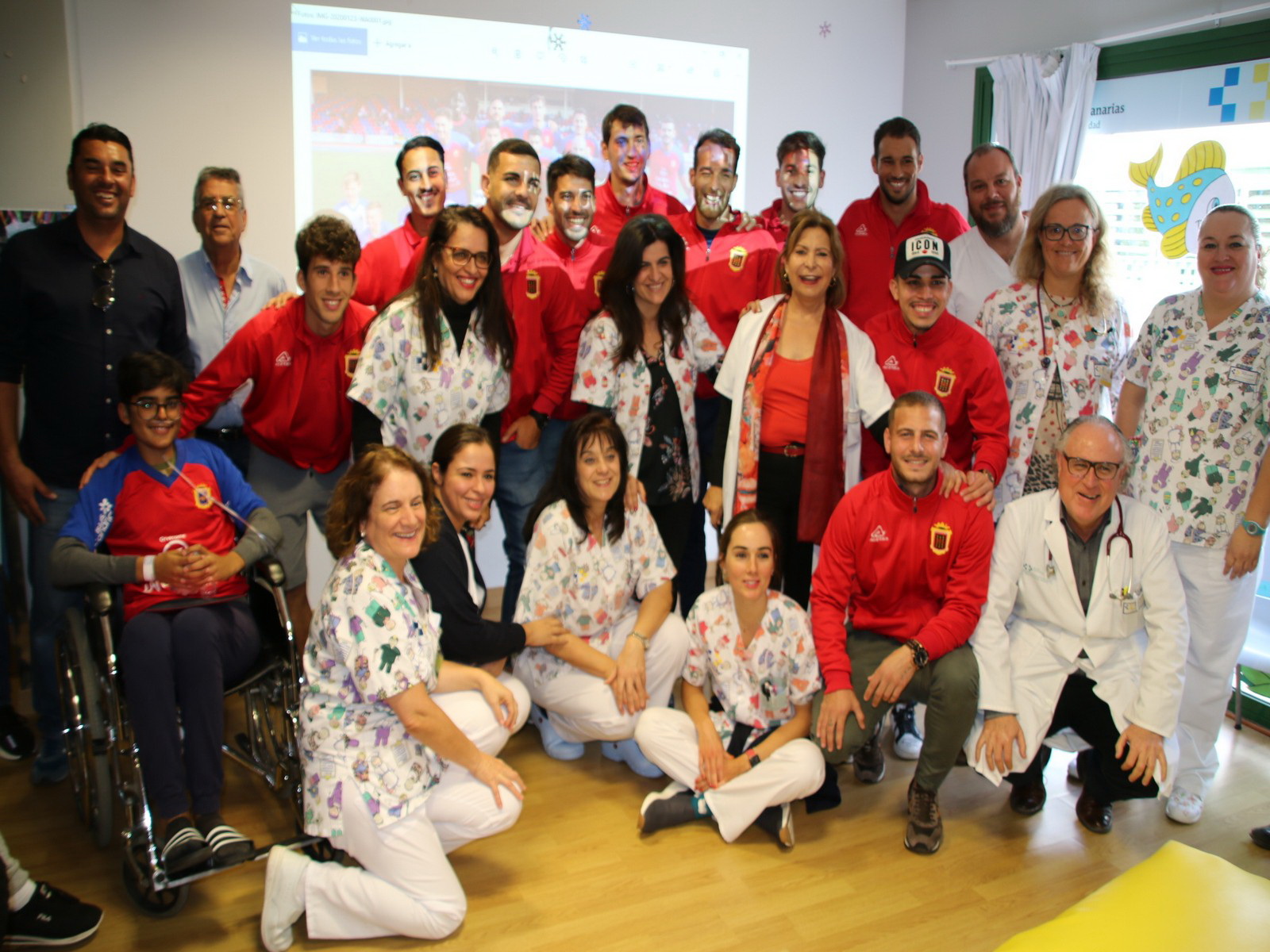 Los jugadores de la UD Lanzarote fueron recibidos por Concepción Pérez, jefa de Pediatría del Hospital Doctor José Molina Orosa. En nombre de todo el equipo de pediatría del hospital agradeció la visita realizada, actividad que ayuda a que los niños ingresados pasen una jornada diferente y puedan conocer de cerca a los futbolistas.