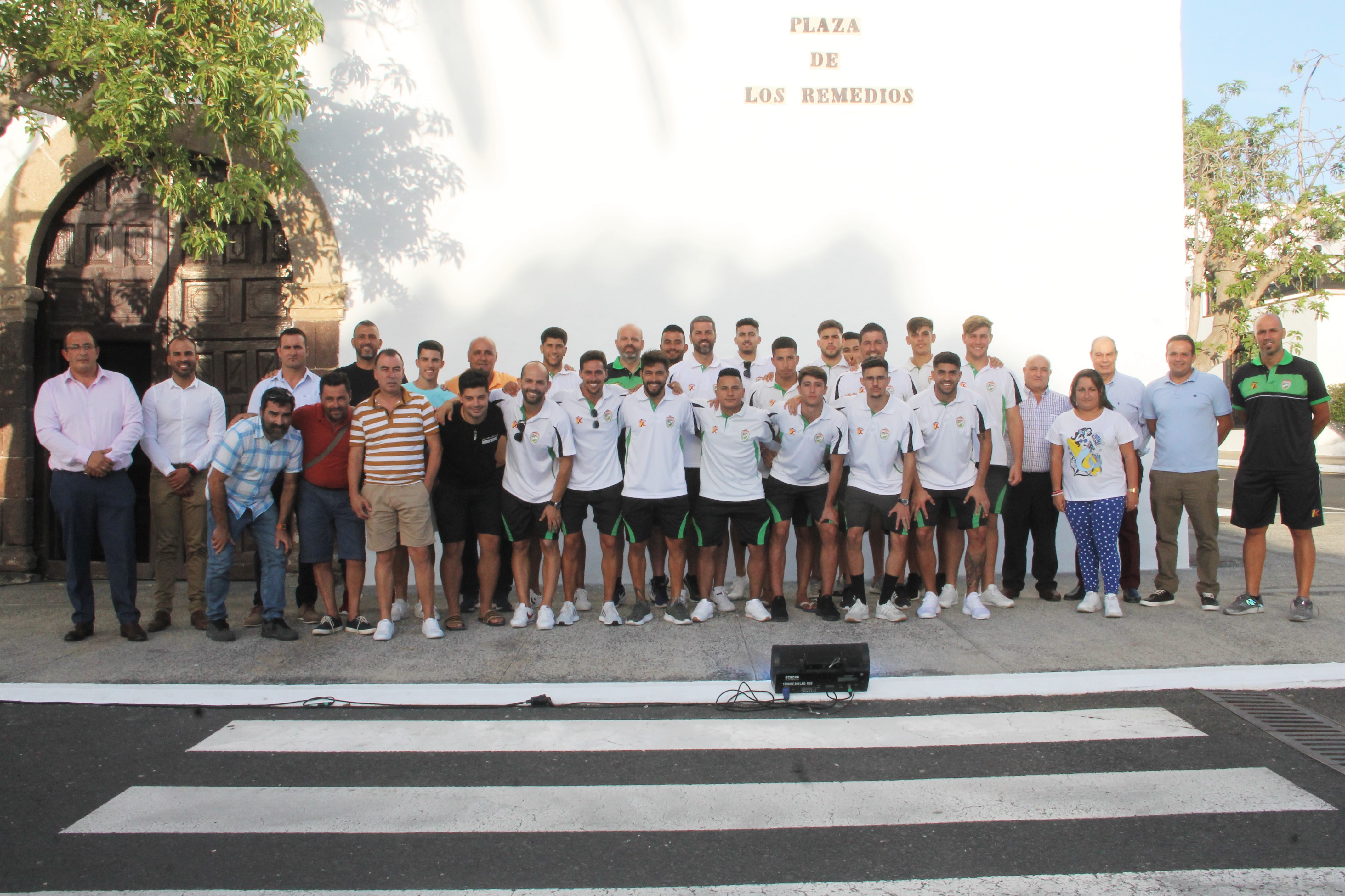 Jugadores del equipo de fútbol regional preferente del Unión Sur Yaiza, miembros del cuerpo técnico y directivos del Club sureño ofrendaron flores el pasado viernes a la Virgen de Los Remedios justo un día antes de su debut liguero como local frente al Real Club Victoria de Gran Canaria, partido sufrido que el Yaiza finalmente pudo solventar con victoria por marcador de 3 - 2.