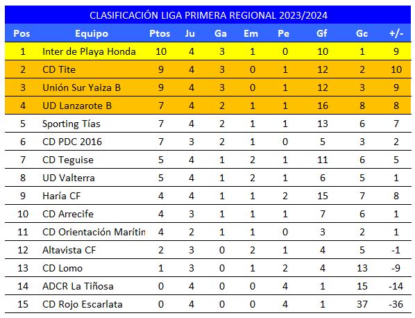 Se disputó en la tarde noche de ayer la cuarta jornada de la Liga de Primera Regional. La competición doméstica está con un atractivo especial esta temporada, con muchos equipos compitiendo a gran nivel y demostrando una gran igualdad en cada uno de los partidos.