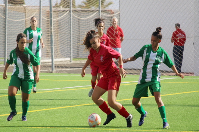 Algo que raramente se había visto esta campaña era a las jugadoras del FC Puerto del Carmen jugando con confianza fuera de su feudo y eso se conseguía gracias al gol de Alicia. Una seguridad que se incrementó pasada la media hora de partido, al anotar Nieves el segundo tanto a la salida de un saque de esquina.