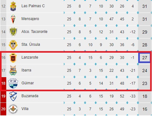Estos encuentros tiene su miga ya que como verán en la imagen (*futbolaspalmas.com) los dos equipos tinerfeños siguen de cerca la estela de los rojillos con lo que en esos dos partidos -sumando el del Sanfer- podremos saber si el final de temporada será más tranquilo o por el contrario más apretado de lo deseado.
