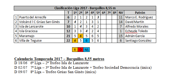 La competición de Liga continuará el próximo domingo con la sexta regata, segunda del Trofeo Isla de Lanzarote.