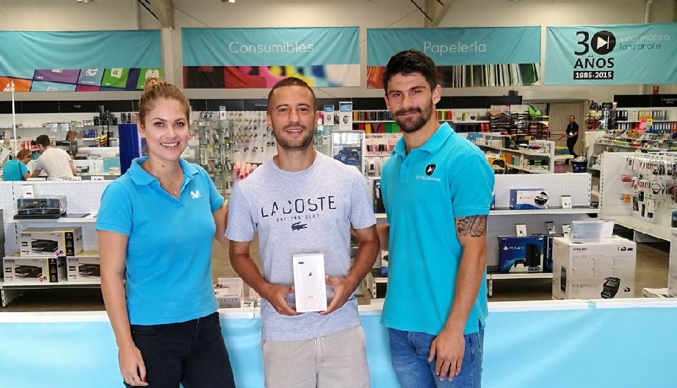 Informática Lanzarote cumple con su promesa de regalar un Iphone X al jugador rojillo que fuera capaz de marcar tres o más goles en un partido