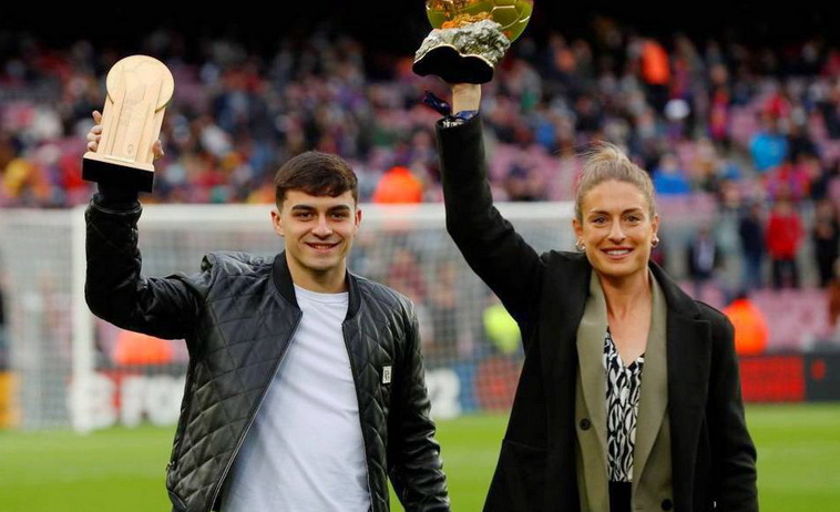 En los prolegómenos del partido el canario ha exhibido a la afición el premio que recibió el pasado lunes