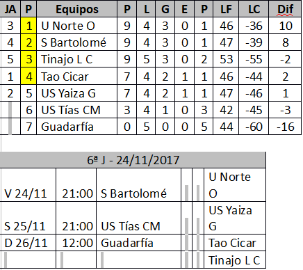 La jornada se cerró entre el Tinajo La Cañada y el colista Guadarfía, una vez más los capitalinos salieron derrotados y continúan siendo el único equipo que no ha puntuado. Los locales vencían por 12 a 9.