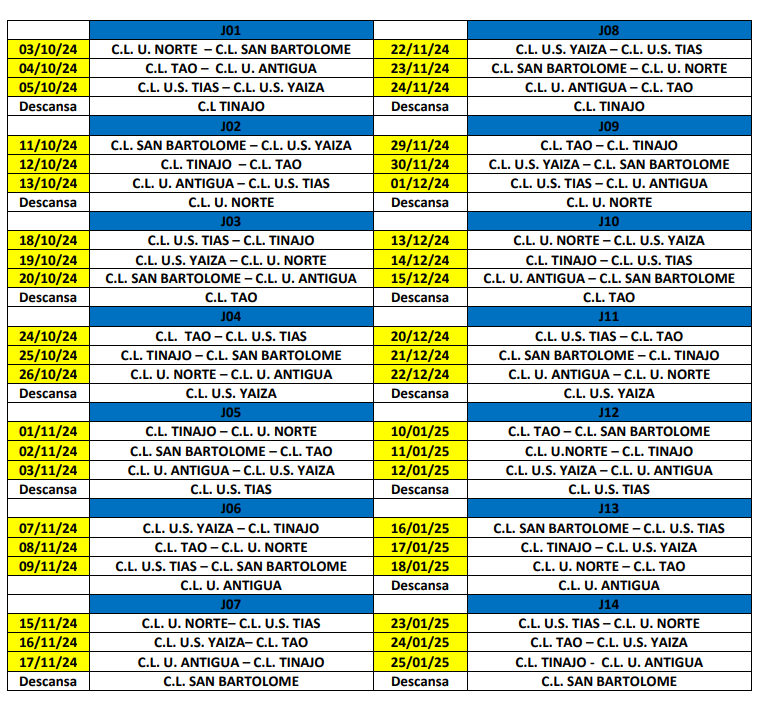 Las semifinales se desarrollarán el 31 de enero y 1 de febrero, ida, y la vuelta el 7 y 8 de febrero de 2025. La final está enmarcada para el 15 de febrero en el Terrero Municipal de Tinajo .