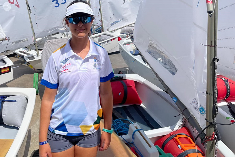 La joven regatista Fayna Tavío del Real Club Náutico de Arrecife navega en aguas de Mallorca