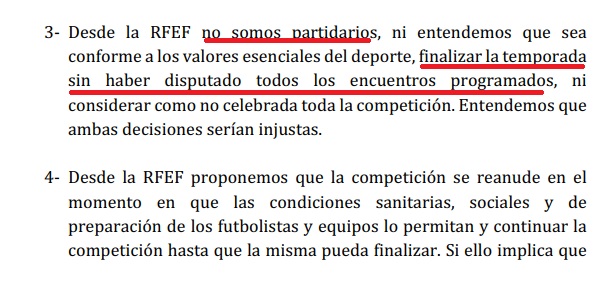 "La RFEF reitera su preocupación por la situación de pandemia que estamos viviendo que requiere de la mayor responsabilidad de todas las instituciones del país entre las que se incluye, como no puede ser de otra manera, esta Federación.