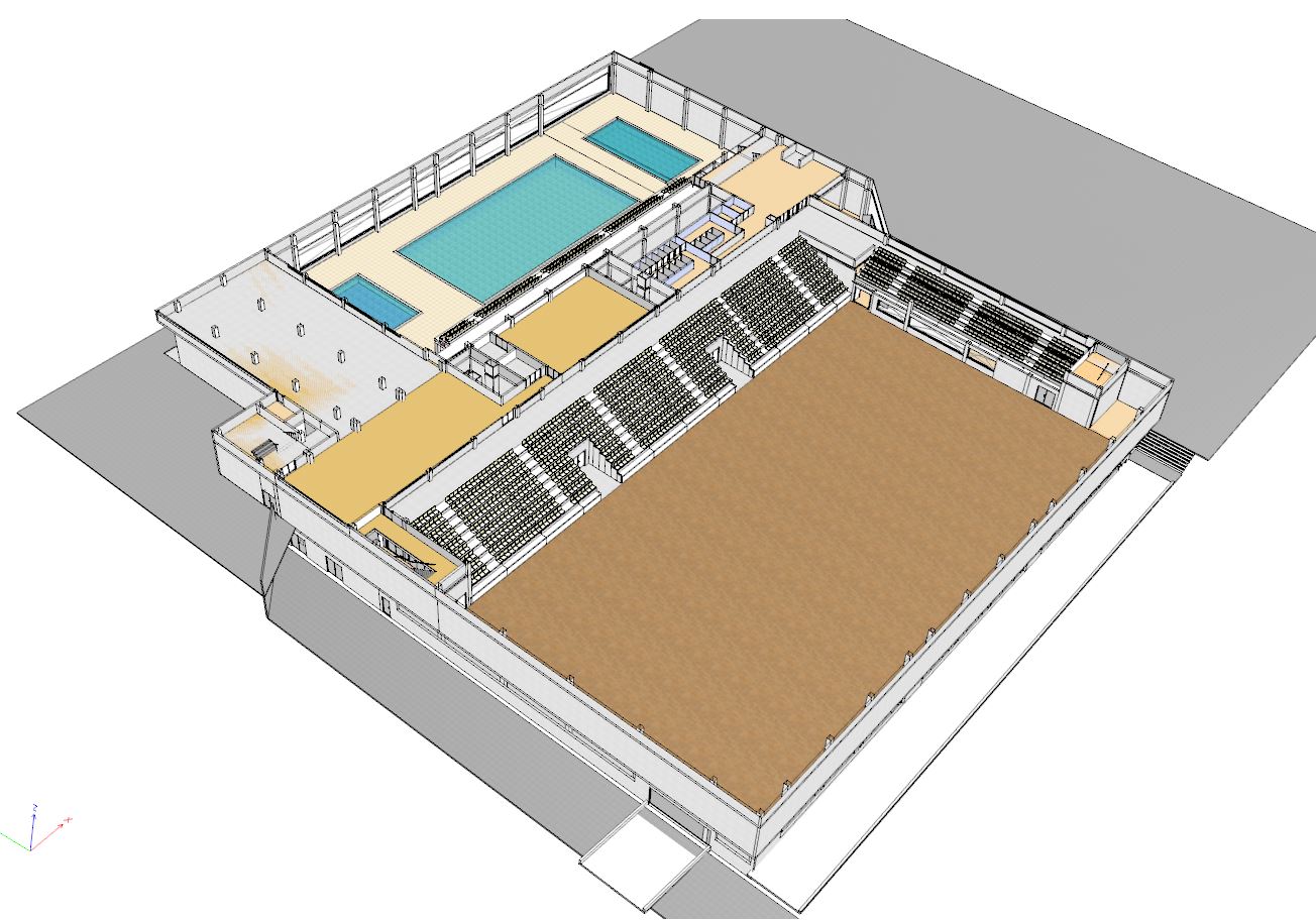 El diseño del Pabellón Deportivo cuida la integración de forma que su volumen, colores y texturas no suponen un impacto negativo con el entorno. La instalación tiene un coeficiente de energías renovables por encima del 74 por ciento, siendo un complejo eficiente desde el punto de vista energético, así como totalmente cómodo y accesible.