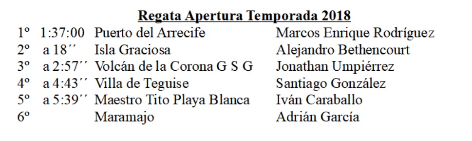 Volcán de la Corona Grúas San Ginés completo a 2´57´´ del ganador el podio de la primera cita de la temporada. Detrás entraban Villa de Teguise, Maestro Tito Playa Blanca y descolgado el Maramajo.