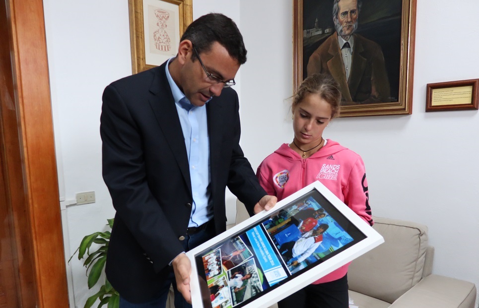 La joven jugadora fue recibida por el alcalde de Teguise, Oswaldo Betancort