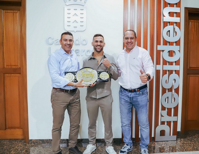 Oswaldo Betancort junto a Juan Monzón, ha recibido al deportista tras ganar el campeonato Fight Club Rush