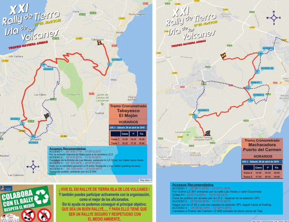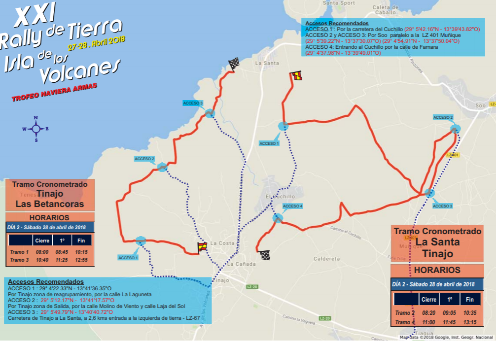 El sábado se disputarán ocho tramos cronometrados, divididos en dos bucles 2x2, uno por la mañana y otro de tarde, que gracias al intenso trabajo del Cabildo de Lanzarote y la colaboración los ayuntamientos, se encuentran en un perfecto estado de piso para tratarse de pistas de tierra.